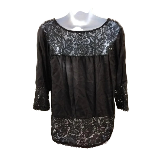 Blouse Long Sleeve By Clothes Mentor In Black, Size: L